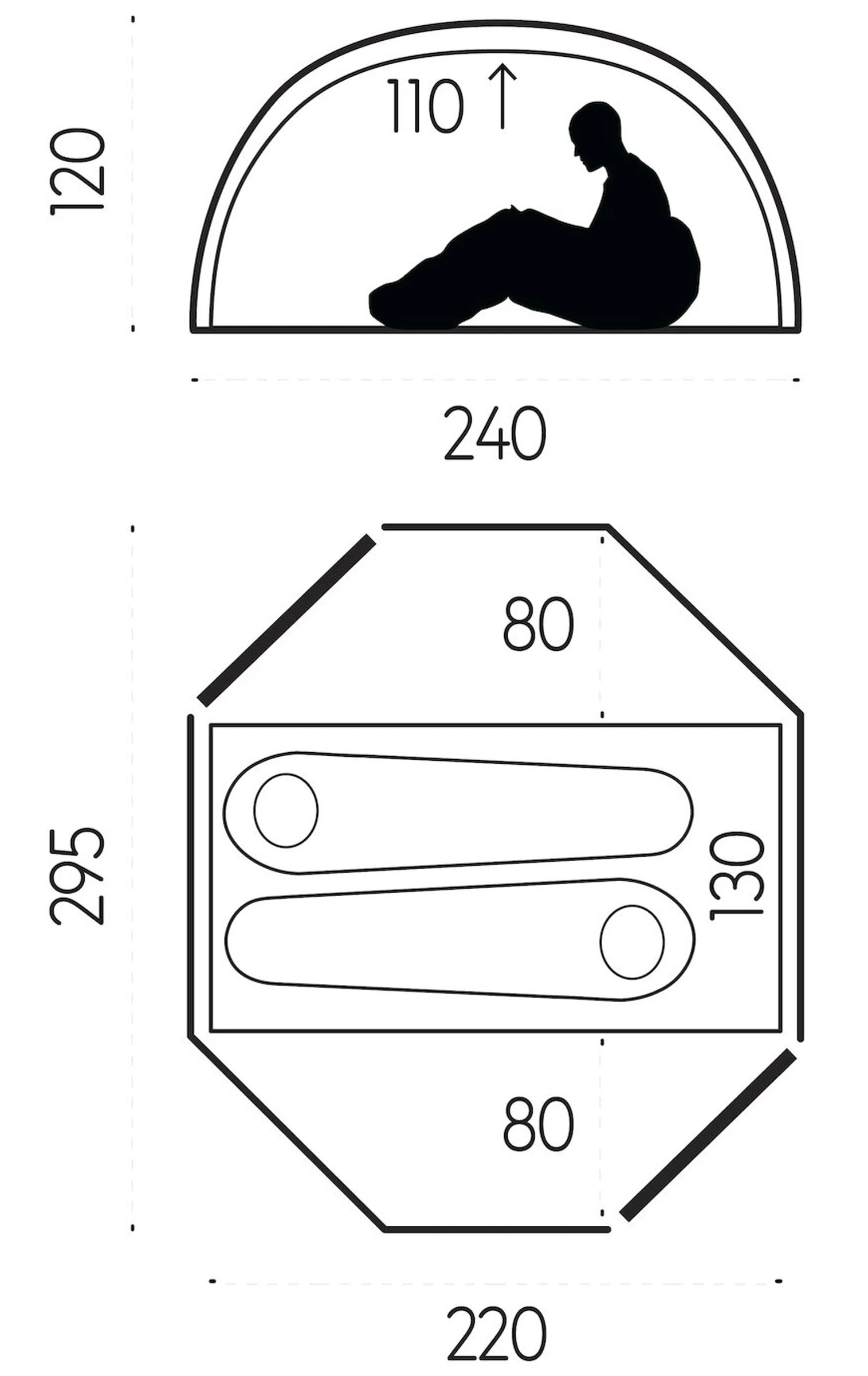 Bunden af inderteltet er fremstillet i en robust 40 denier Nylon 210T, som er belagt med en krydsforbundet PU for at gøre materialet helt vandtæt. Det righoldigt antal DAC alu-pløkke er med V-profil, som giver et godt bid i blødere og mere porøst underlag, ligesom de er nemme at få i jorden.