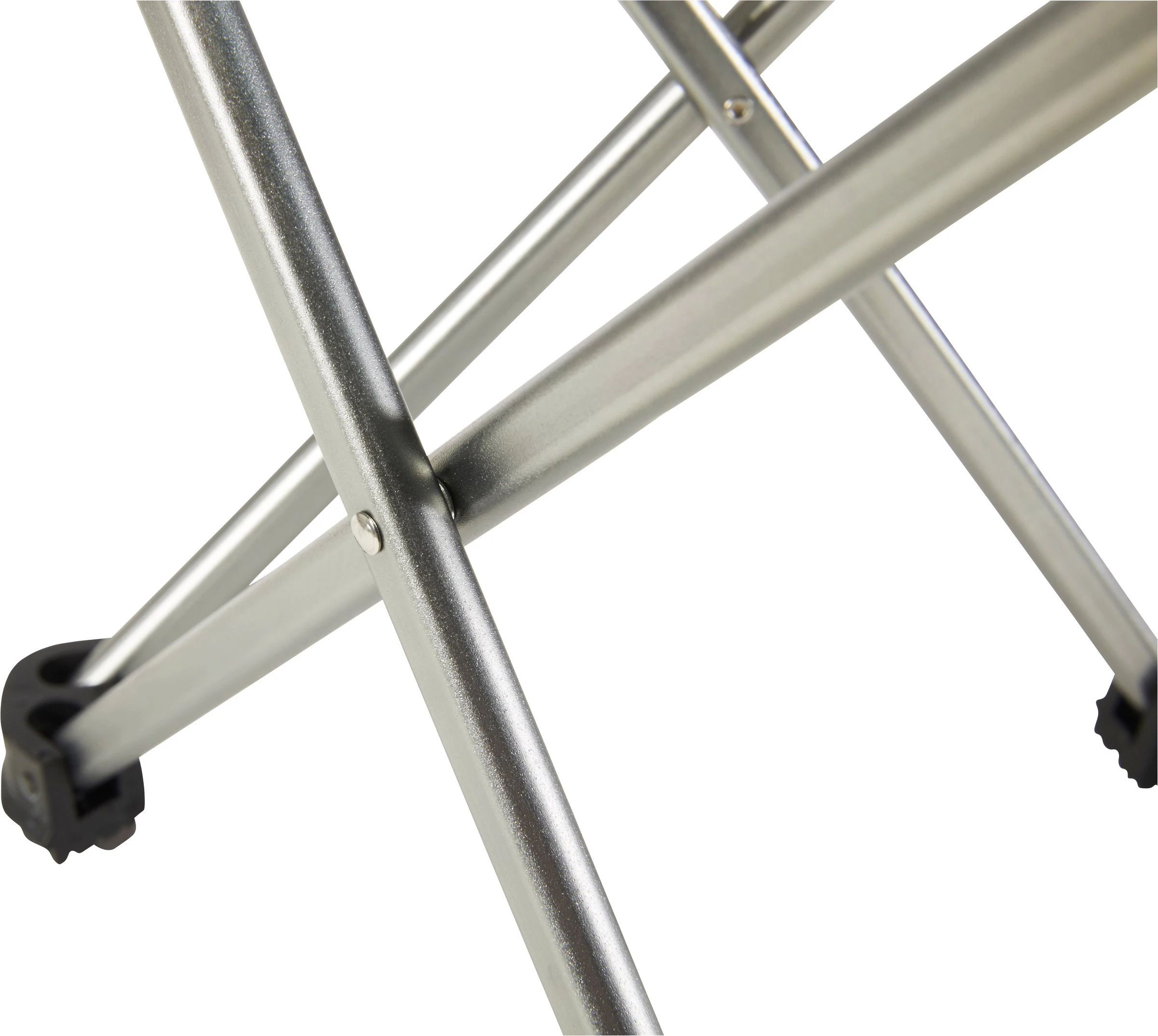 Siddehøjden er 28 cm. og det komfortable sæde er fremstillet af slidstærkt Oxford Polyester, medens de robuste foldeben er af anodiseret aluminium. Denne lille og kompakte stol står sikkert og stabilt på stort set alle typer underlag og den tåler en belastning op til 100 kg.