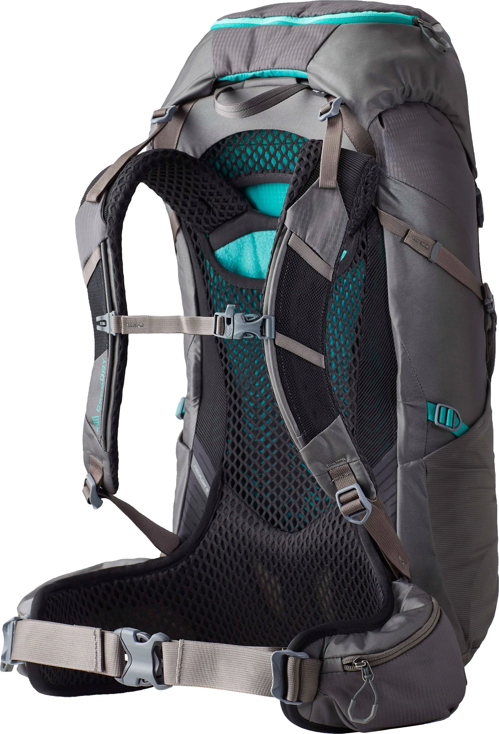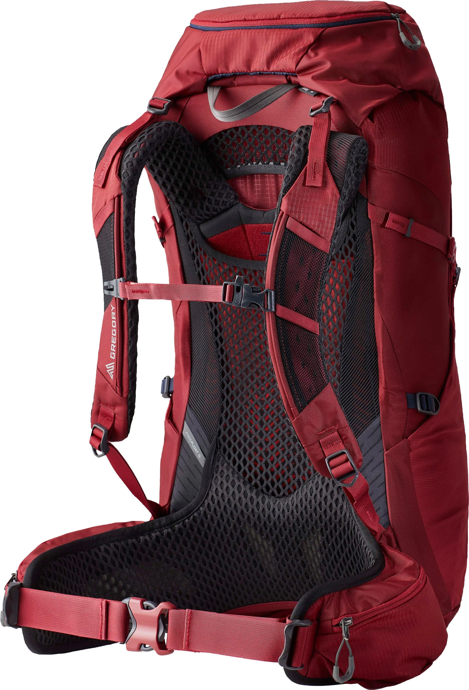 Gregory Jade 33 S/M Women er bygget op omkring det helt nye, højdejusterbare og super velventilerende Free Float™ bæresystem, hvor der på denne udgave nøje er taget hensyn den kvindelige anatomi. Selve bæresystemet består dels af en fleksibel rygplade af polycarbonat indlagt i selve rygsækken og dels af et panel af luftigt mesh, som sidder ind til ryggen. Foran selve rygpladen er der placeret en kraftig metalwire af absorberende fjederstål, som har direkte forbindelse til såvel skulderremme som hoftebælte for at give maksimal vægtoverførsel og aflastning. Denne metalwire er – ligesom rygpladen – altså fleksibel, så den kan give sig og dermed øges bevægelsesfriheden. Denne konstruktion giver en meget fin tyngdeabsorption kombineret med en diagonal fleksibilitet, der giver den forbedrede bærekomfort og en optimal vægtforskydning.