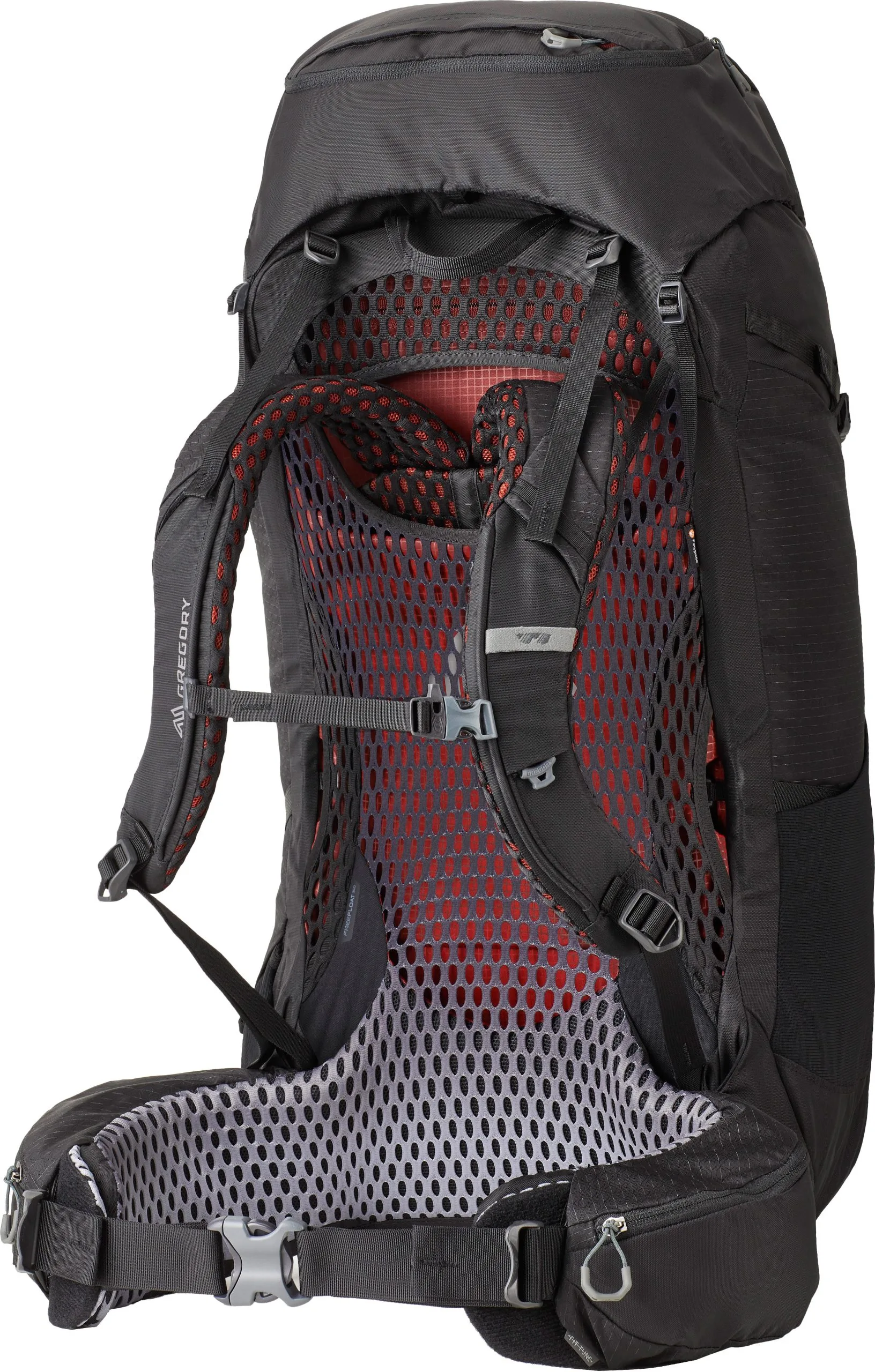 Både de perfekt formede skulderremme og hoftebæltet er skåret med særlige FocusForm™ -komfortzoner, som Gregory har brugt meget tid på at udvikle. Denne løsning, hvor der nøje er skelet til kroppens anatomi, sikrer maksimal aflastning på de mest udsatte områder, uden at skulle bruge unødig megen skumpolstring på spidsbelastningspunkterne. Både hoftebælte og skulderremme er foret med formpresset LifeSpan™ -termoskum med forskellige densiteter (afhængigt af placering og belastningsgrad) og med ventilerende Die Cut-udstansninger, som holder vægten nede og bidrager til øget smidighed og ventilation. Og dette termoskum forener den sublime bærekomfort med super lav vægt bedre end noget andet vægtorienteret polstringsmateriale!