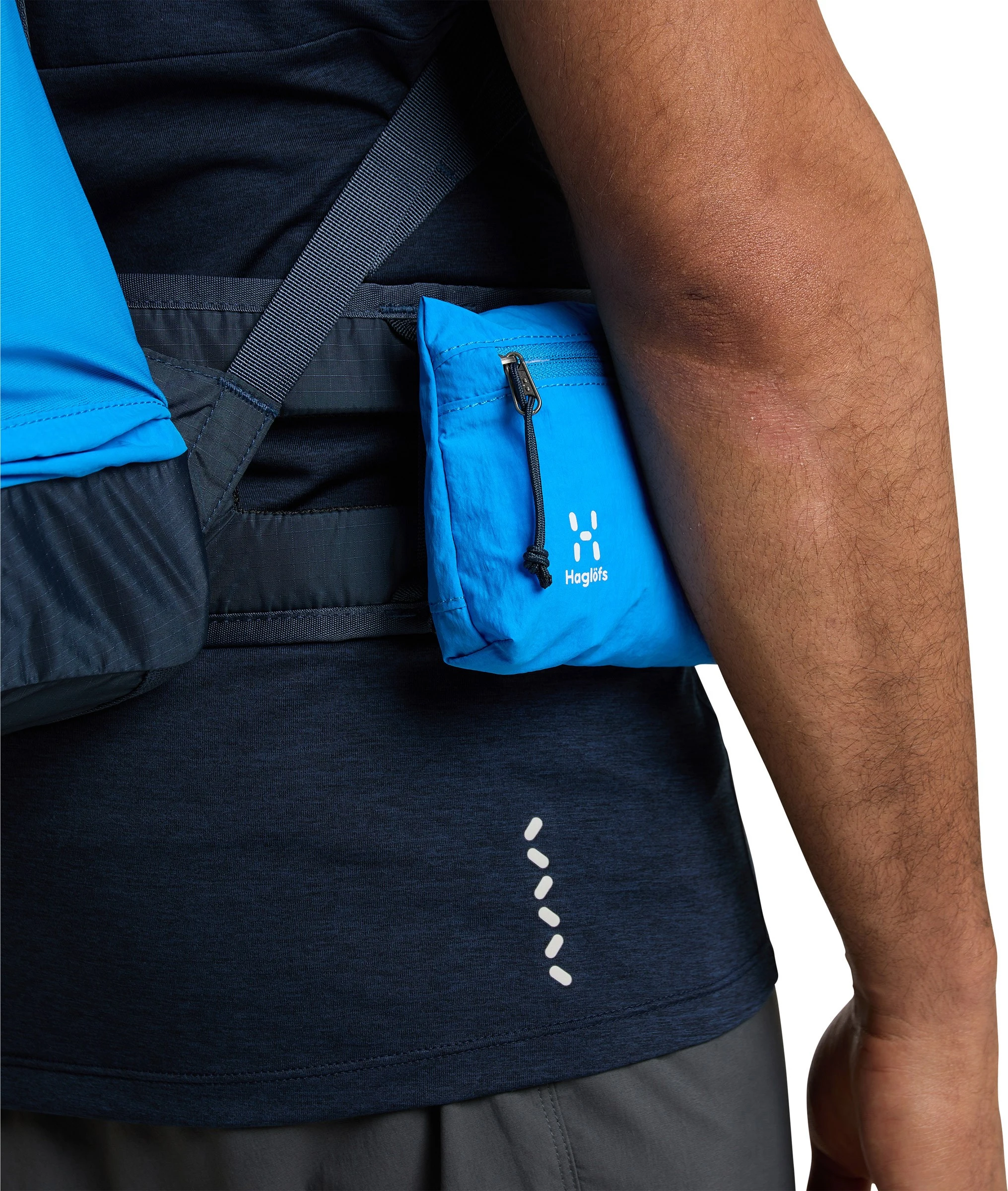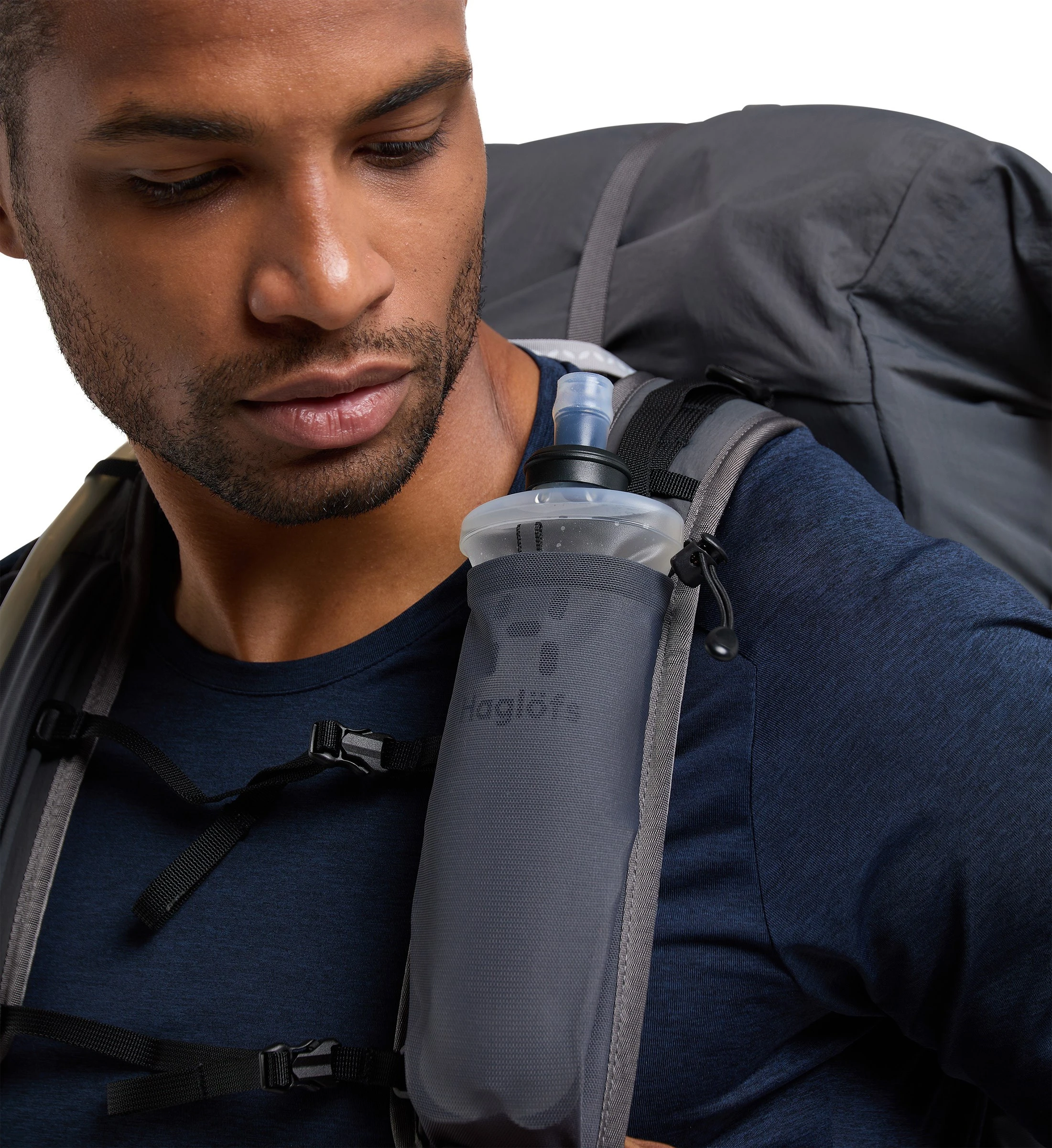 Den ene skulderrem er udstyret med en lynlåslukket stretch-lomme til de småting, man nemt og hurtigt skal kunne komme til, medens den anden er forsynet med strækbar stiklomme til bl.a. den medfølgende Hydroflask™ på 360 ml. foruden en justerbar udstyrsløkke til vandrestavene, så de er nemme at komme til, når du er på farten.