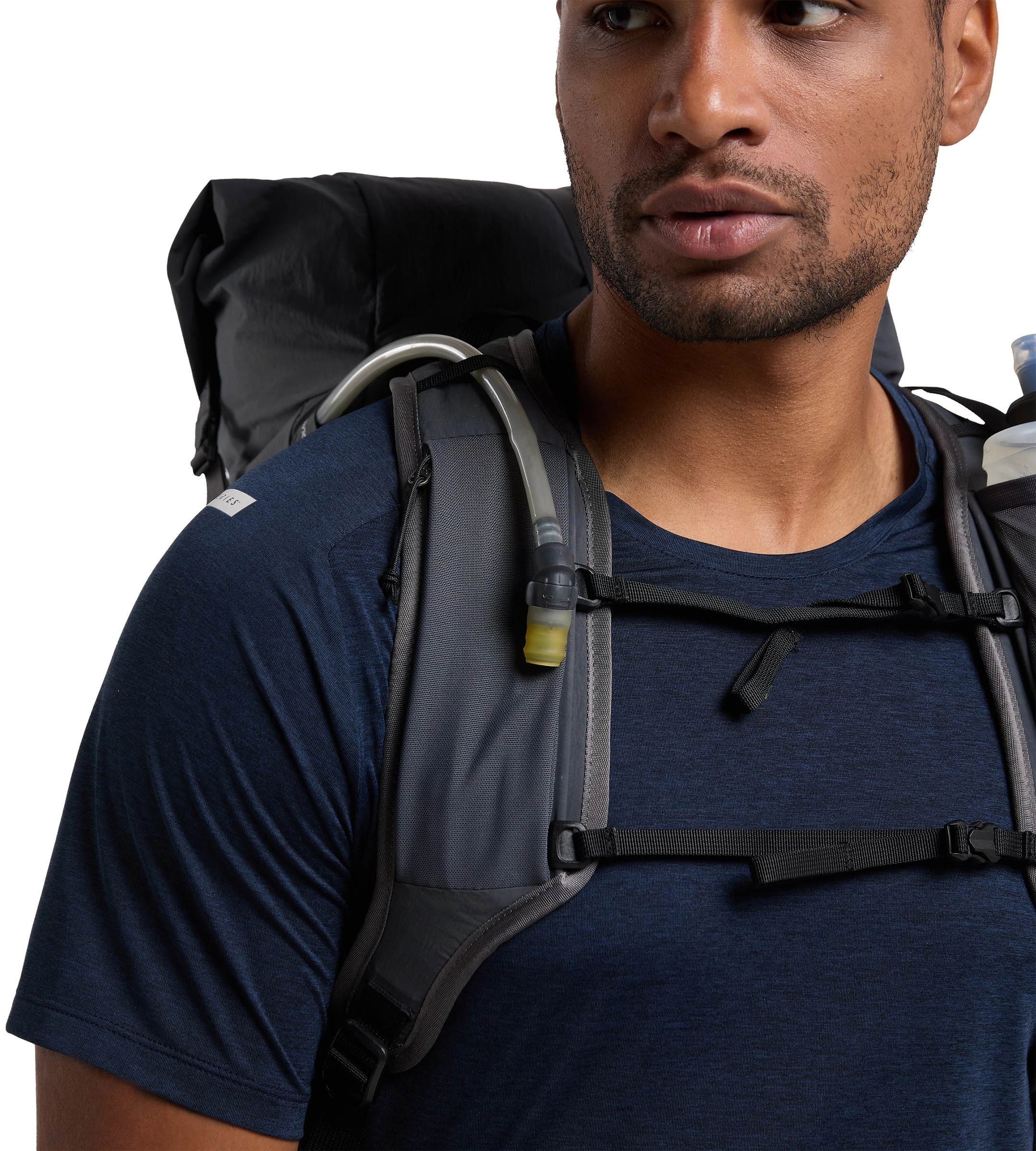 Så Haglöfs L.I.M. Airak 38 S/M viser en helt ny måde at tænke bæresystem på. Haglöfs har nemlig udviklet det særdeles velventilerende Airback™, som er et bæresystem, der får selve rygsækken væk fra ryggen for at optimere ventilationen – og det er noget, der mærkes, uanset om du skal gå, løbe eller cykle med rygsækken!