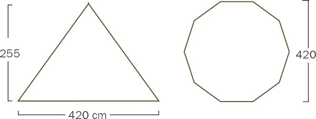 Inderteltet er med fastsyet bund, så man undgår vind og fygesne i inderteltet, og den store luge i midten af bunden er tiltænkt bålplads, ovn eller eventuelt en kuldegrav.