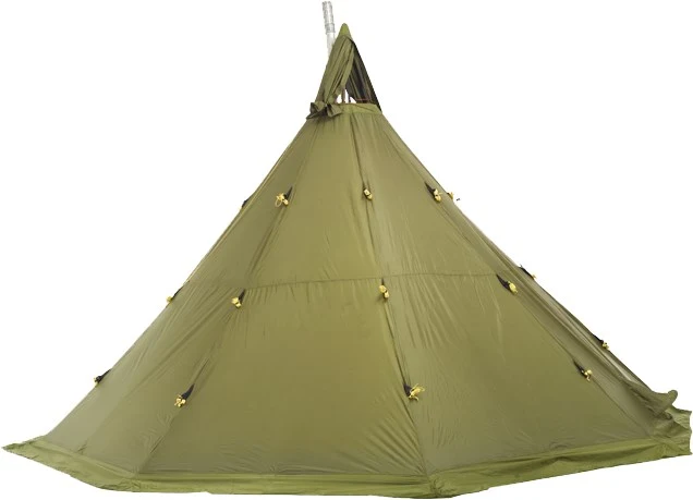 Det unikke ved oversejlet i en Helsport lavvu er, at det er fremstillet med en speciel flammehæmmende behandling, der altså gør, at man kan have bål i midten af lavvu’en, uden at skulle bekymre sig om vildtfarende gløder fra bålet. Den nederste del af oversejlet på Varanger er forsynet med stærke stenkanter i det ekstra kraftige Rainguard® TR Ripstop PU, der ligeledes er et flammehæmmende materiale.