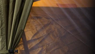 Døråbningen har to kraftige lynlåse af YKK® -typen, og bag hoveddøren, er Varanger udstyret med fintmasket myggenet, ligeledes i flammehæmmende materiale, der også åbnes med stærke YKK® -lynlåse.