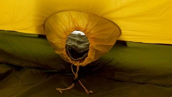 De to regulerbare ventiler nederst på oversejlet og den fuldt justerbare tophat – som med et snedigt snoretræk snildt reguleres fra bunden af teltet indvendigt – sørger for den rette luftgennemstrømning i lavvuen og opretholder dermed det rette indeklima. Bag Airflow II® -indluftsventilerne nederst er der naturligvis også myggenet, så alt uvelkomment kryb holdes udendørs.