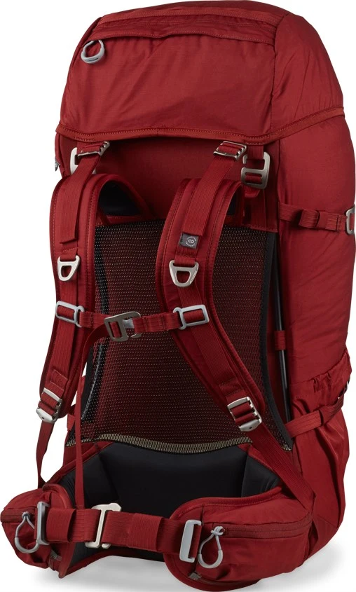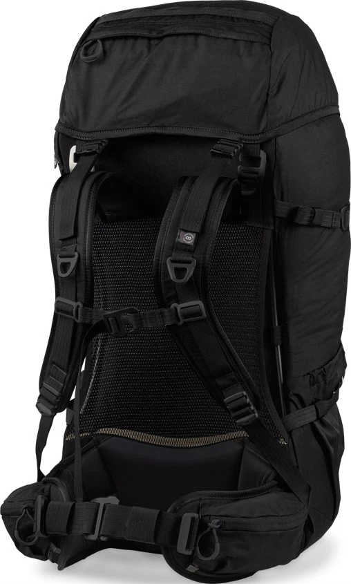 En 8 mm. aluminiumsramme et ventilerende mesh-panel i ryggen opretholder rygsækkens lettere, kurvede facon, og rammen sørger samtidig for vertikal stivhed og aflastning samt diagonal fleksibilitet, således bevægelsesfriheden ikke hæmmes.