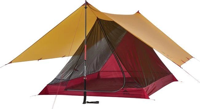 På de varmeste sommernætter, hvor man gerne vil sove under åben himmel, men alligevel ønsker effektiv beskyttelse mod det fugtige underlag og irriterende insekter, tilbyder MSR dette fikse Thru-Hiker™ Mesh House 2, som nemt og hurtigt rejses ved hjælp af de medbragte vandrestave eller et par passende grene.