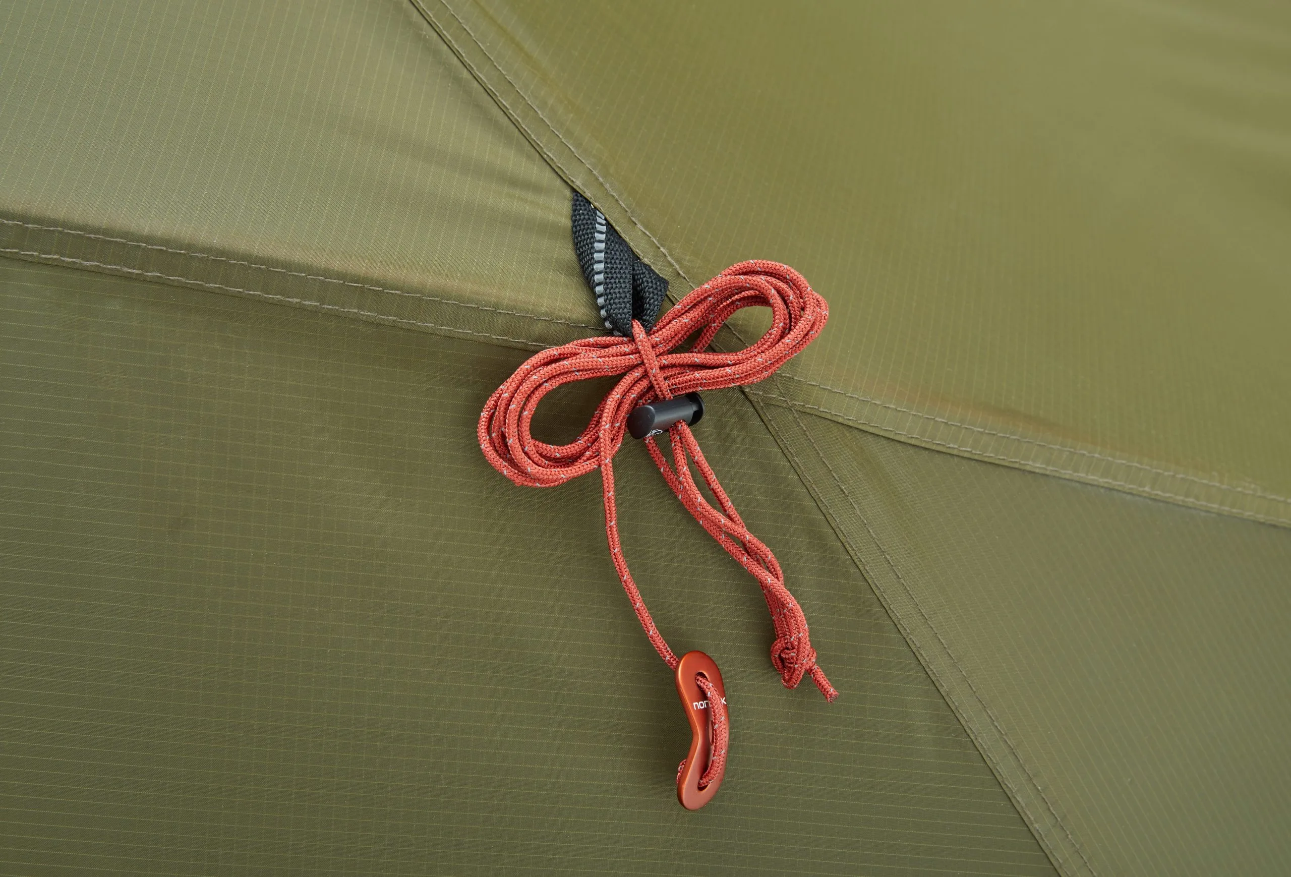 Alle spidsbelastningspunkter såsom bardun- og pløkfæste er selvfølgelig ekstra forstærket og en ventilskakt i begge ender af oversejlet sørger for at opretholde det rette klima i teltet. Bag disse ventiler er der naturligvis myggenet.