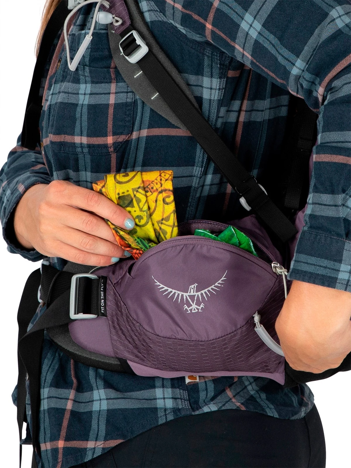 ∙ Osprey Fit-on-the-Fly™ -justerbart hoftebælte, som kan reguleres undervejs.