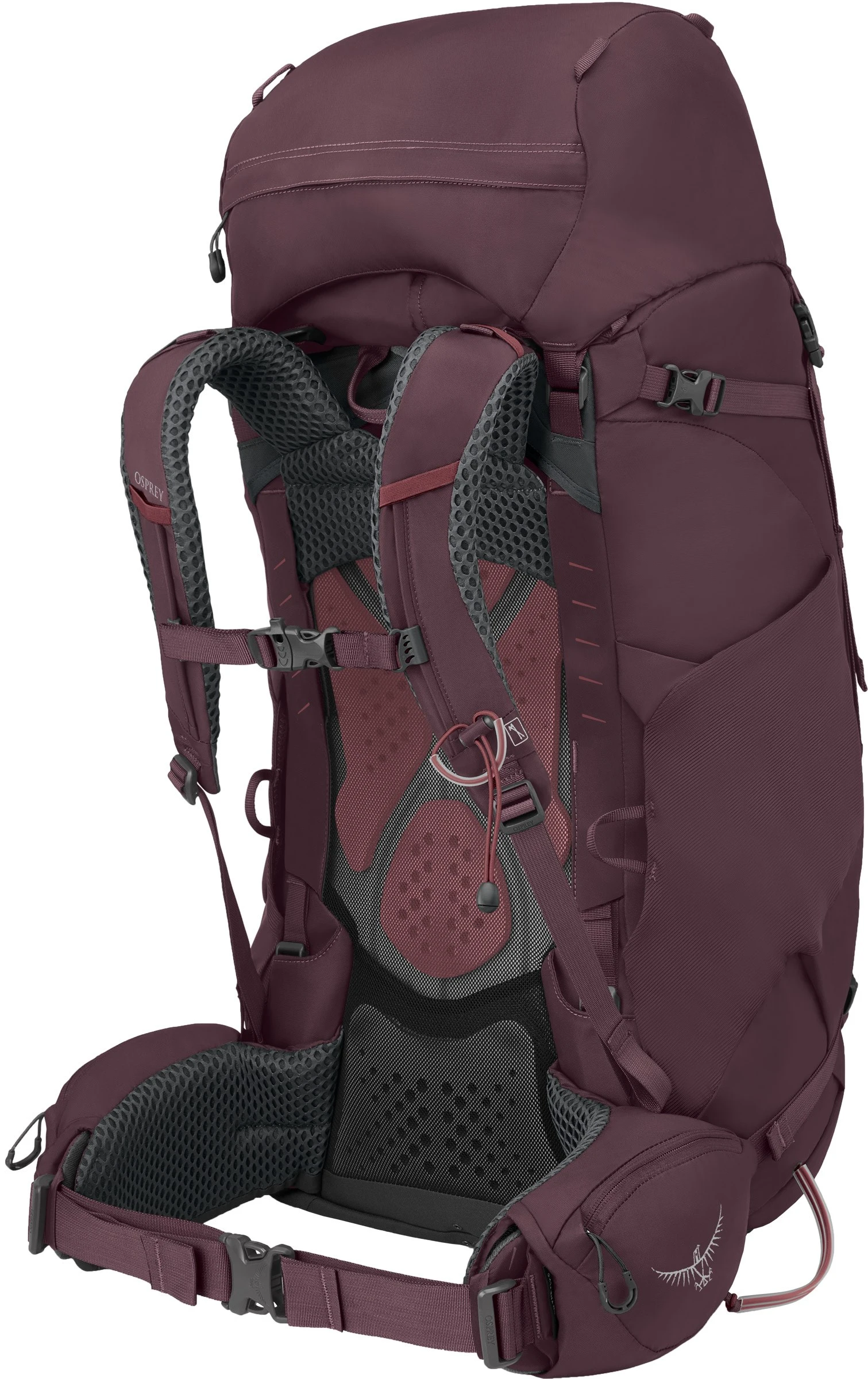 I det hele taget er Kyte 68 M/L Women udstyret med alle de væsentlige og rigtige detaljer til de strabadserende ture på fjeldet eller i vandresporet herhjemme. Det integrerede og aftagelige regnslag holder indholdet tørt, hvis vejret skulle vise tænder, Ospreys geniale Stow-on-the-Go™ gør det fantastisk nemt og hurtigt at både fastgøre og tilgå sine vandrestave, de talrige og velplacerede kompressionsstropper minimerer eventuel overskudsvolumen og holder vægten godt ind til ryggen, de justerbare remme levner udvendig plads til liggeunderlaget, ligesom der på fronten er monteret to rækker ‘loops’ til fastgørelse af udstyrskarabiner eller til montering af ekstra udstyrsstropper. De obligatoriske udstyrsløkker til isøkser eller skovl er der selvfølgelig også fundet plads til.