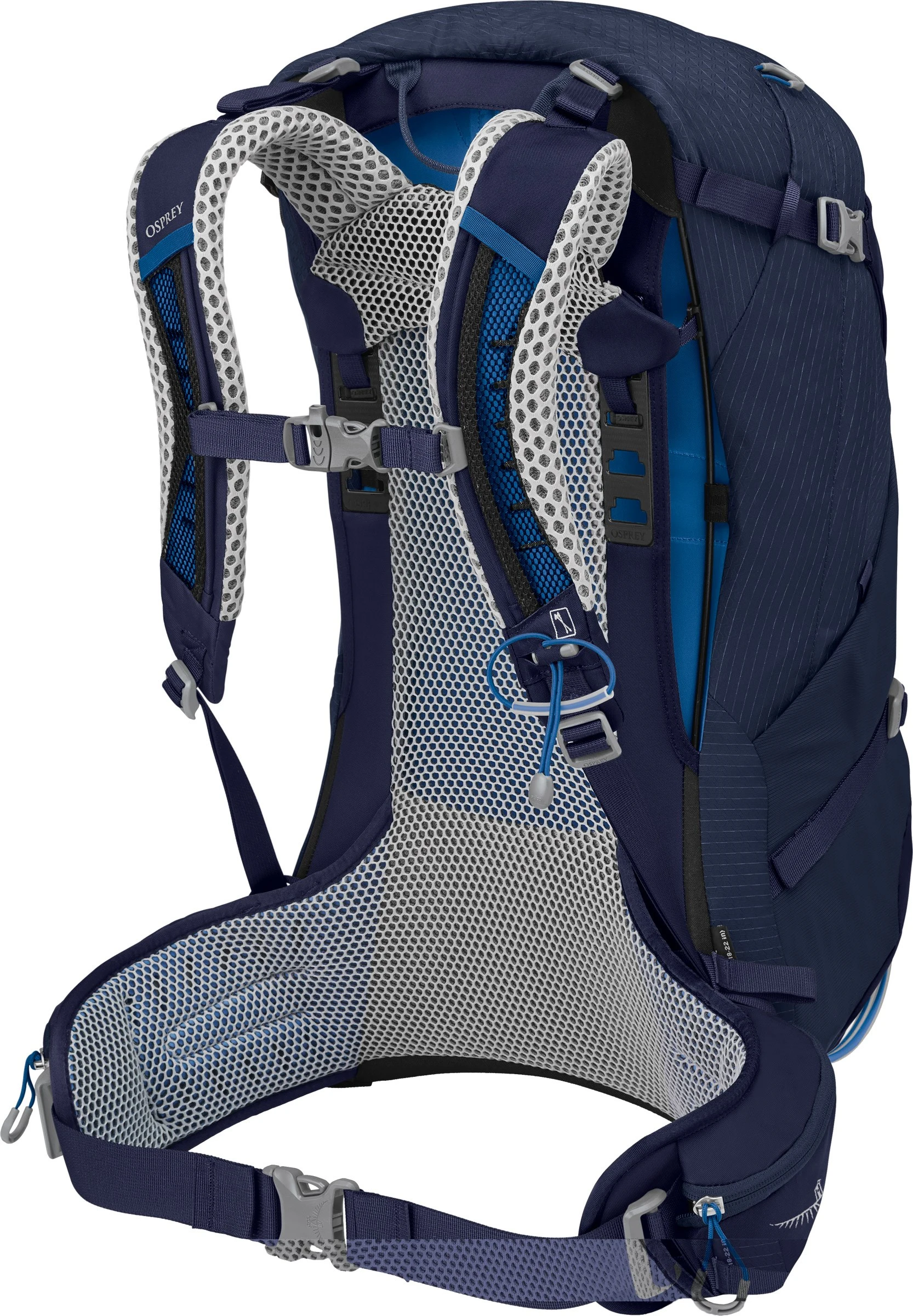 Denne innovative Stratos 34 skal ses som alternativet til den meget populære Gregory Zulu 30 og er således Ospreys særdeles vellykkede bud på en velventilerende turrygæk, som størrelsesmæssigt er placeret et sted mellem dagtursrygsækken og den større vandrerygsæk. Således er den ganske oplagt til både de mere krævende dagture, weekendture eller de helt lette sommerture, hvor rygsækkens størrelse gør den rummelig nok til det helt lette telt, kogegrej og provianten. De fine adgangsmuligheder til hovedrummet gennem den meget lange U-formede og tovejs lynlås eller lynlåsåbningen i bunden gør det nemt at komme til sit udstyr, og de effektive kompressionsmuligheder på siderne minimerer eventuel overskudsvolumen på de kortere ture, men sikrer samtidig fine ekspansionsmuligheder, når der er behov for den ekstra plads i rygsækken.