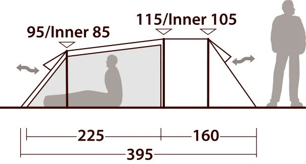 Teltet entreres gennem den store sidedør til apsis med tovejs lynlås og forstærkende stikspænde nederst, som holder døren lukket i selv det værste vejr. Når døren er helt åben, kan den foldes sammen og puttes i en stiklomme i oversejlet, så den ikke er i vejen. Den store apsis er hele 160 cm. dyb og op til 195 cm. bred, så der er god plads til både bagage og madlavning i dårligt vejr.